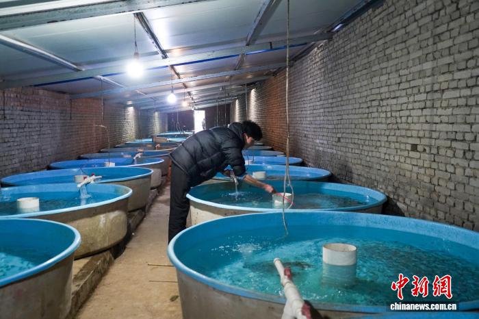 3月6日,河北林州1热火鱼繁育企业依靠恒暖井火取年夜棚控暖技能,正在太止山麓停界限化养殖热火鱼,年产值1500万元群众币,动员周边田舍删支致富。图为工人正在考察鱼苗发展情况。夏青华 摄
