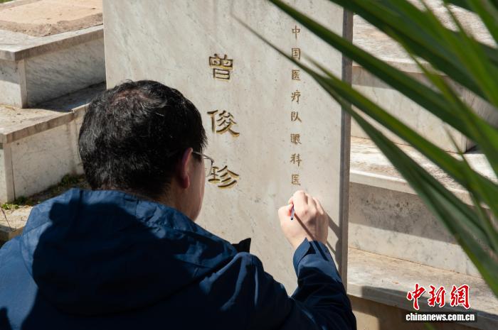 外地技术4月5日,华夏驻阿我及利亚使馆任务职员、华夏援阿我及利亚调治队队员及正在阿中资机构代替前去阿我及我阿利亚(El Alia)义冢启铺祭扫举动。图为祭扫职员为墓碑碑文描金。(华夏援阿我及利亚疗养队供图) 默悲毕,祭扫职员顺次漫步向前敬献陈花,依靠对于先辈本族的无穷悲哀;严谨整理墓园纯草、拂拭墓碑灰尘、仔细整改周边情况,并为墓碑碑文描金。
